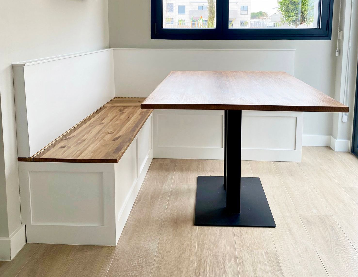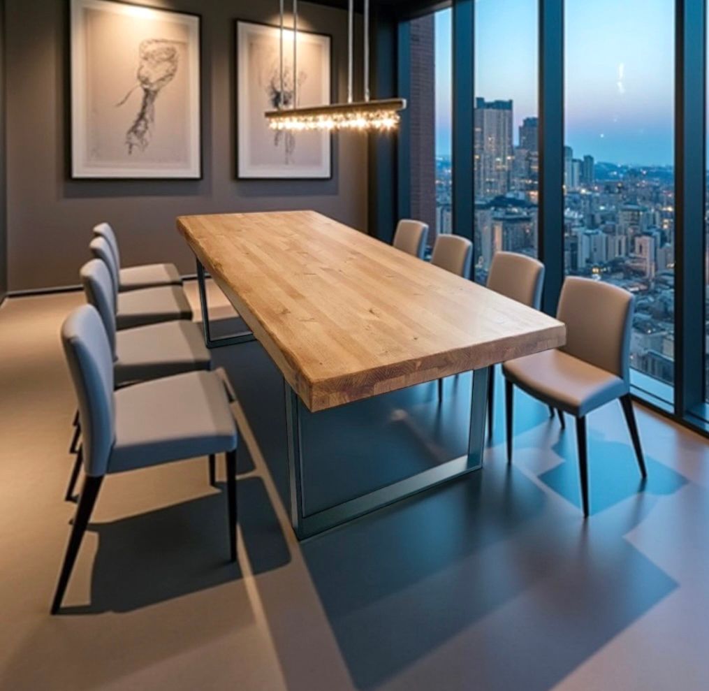 Trabajamos con la nobleza de la madera, combinada con la modernidad del hierro y el cristal, para crear piezas maestras: desde imponentes mesas de comedor e islas de cocina, hasta elegantes separadores de ambiente y cabeceros de diseño.
