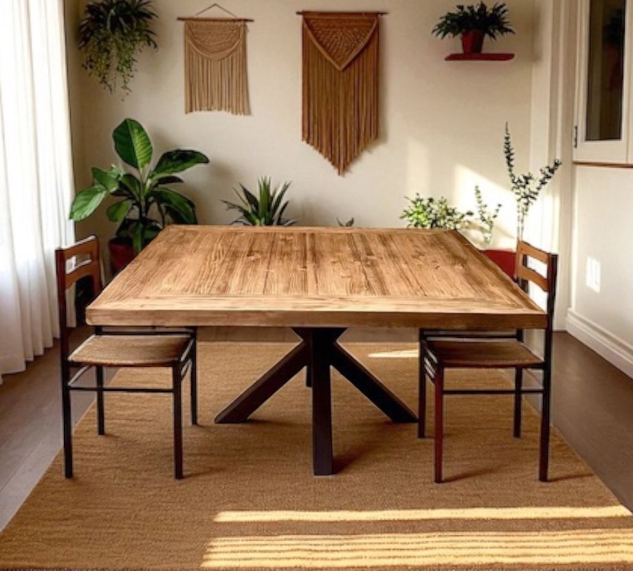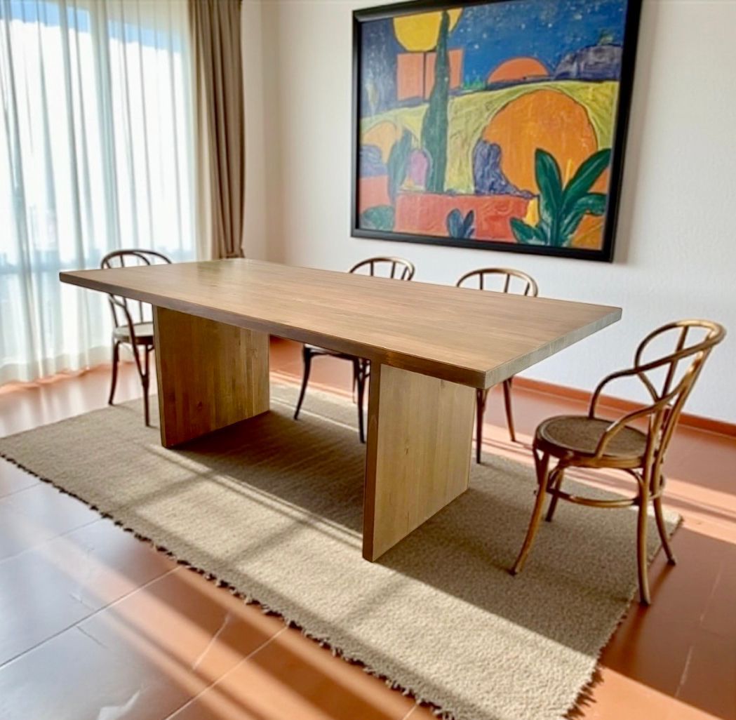 Trabajamos con la nobleza de la madera, combinada con la modernidad del hierro y el cristal, para crear piezas maestras: desde imponentes mesas de comedor e islas de cocina, hasta elegantes separadores de ambiente y cabeceros de diseño.